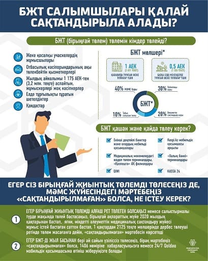 «МӘМС туралы» Заңға сәйкес adilet.zan.kz/rus/docs/Z1500000405 жарналарды ай сайын төлеу қажет. Бұл ретте 2020 жылдың қаңтарынан бастап соңғы 12 айда төлемдердің болмуы маңызды. Егер олқылықтар болған жағдайда «сақтандырылған» мәртебесі берілмейді.