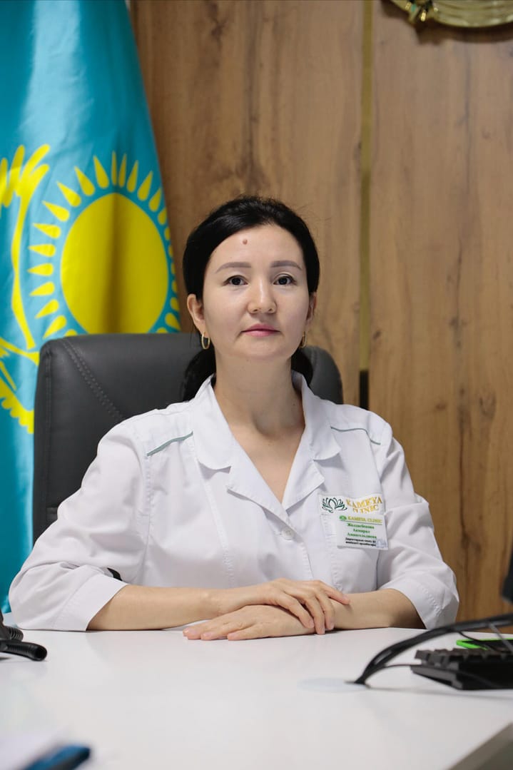 Жаукебаева Сандугаш Каирбековна, заместитель директора по контролю качества медицинских услуг. Стаж 11 лет. Образование: Медицинского университета Астана. Факультет: Лечебное дело.